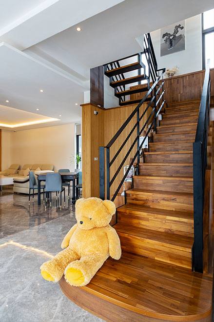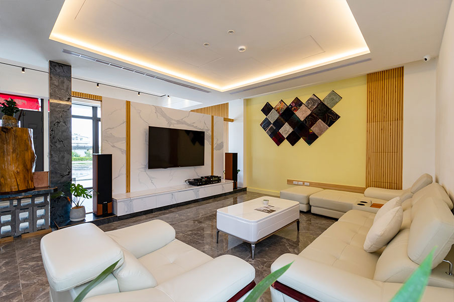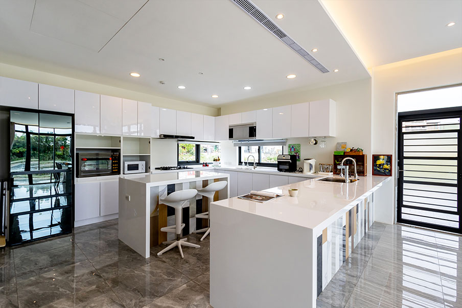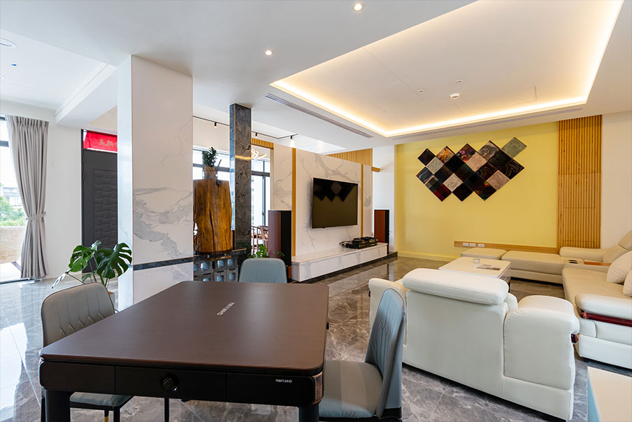 捨棄了繁雜的飾綴,這裡將空間完整留給了自然與歡笑。前院偌大的庭園造景,規畫了寬敞的停車空間並貼心附設充電樁;中庭則是一方靜謐,讓您能在躺椅上與稻香共眠。後院那片蔥鬱的綠意草地,最適合與親友烤肉相聚,或看著孩子在戲水區捕捉純粹的快樂。推開大門,純白中島廚房與暖木色調的茶空間,透過落地窗映照著四季更迭。當夜幕低垂,客廳的歡唱旋律與電動麻將桌前的笑聲交織;而在三樓,我們為孩子留了一方充滿故事與童心的奇幻天地,讓大人的放鬆與孩子的純真並行。