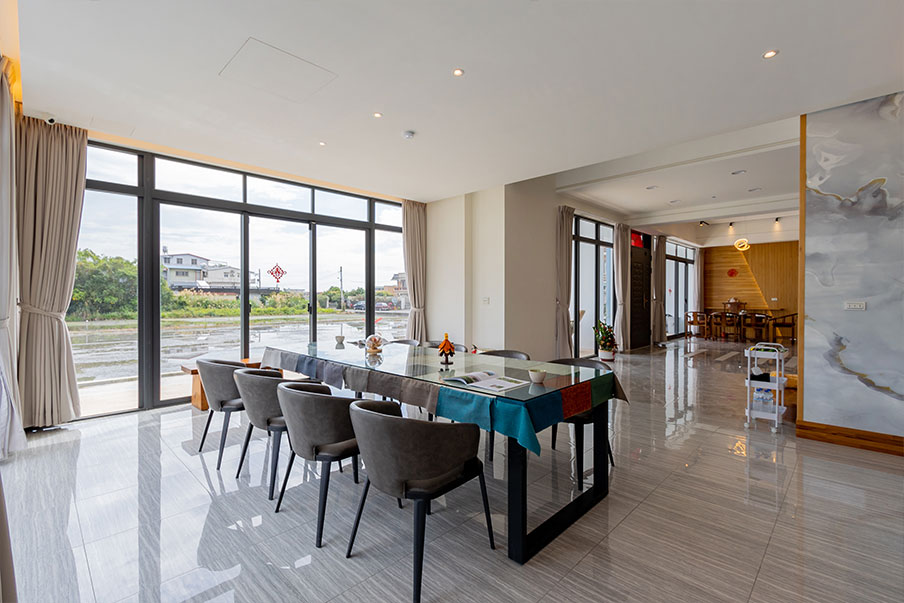 宜蘭羅東的田野間,純白優雅佇立的「穗這裡」。藍白交織的獨棟空間,伴隨門口可愛柴犬的迎賓笑意,營造出親子與毛小孩共享的溫馨角落。大面落地窗將四季稻香引入室內,餐敘品茗間,窗外美景如影隨行。
