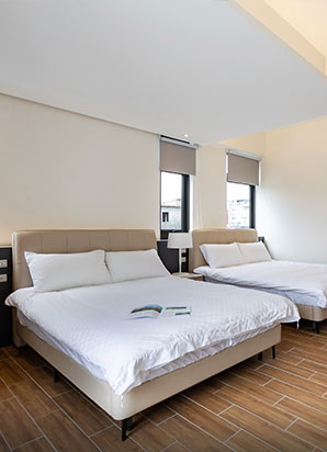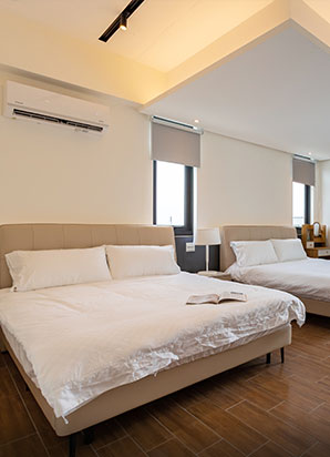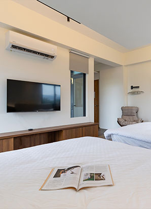 - 穗這裡提供空間感十足的六人房與專屬陽台;二至四人房則設有大露臺,讓您在晨曦微風中,獨享蘭陽平原的靜謐與遼闊。